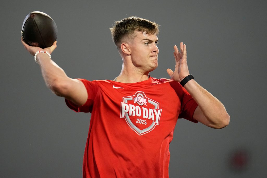 “Will is a good kid. We’ve gotten to talk a little bit. I thought he did really well today,” Rodgers said. “You know, he seems pretty bright, not too big for him… I’m gonna be with him every single day, in every single meeting. Found my seat next to him today in the offensive meeting — whether or not that sticks — right next to Will Howard. So I’m going to help him out as much as I can.”